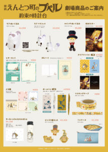 2026.03.10 『映画 えんとつ町のプペル 〜約束の時計台〜』劇場グッズが発売決定! 本作の劇場グッズの発売が決定いたしました。 上映劇場にて、公開日3月27日(金)の各劇場オープン時より発売開始となります。(一部劇場・商品を除く) ○劇場グッズ 劇場グッズは、公開日午前11時より、下記にて通信販売もいたします。 ★TOHO theater STORE https://tohoentertainmentonline.com/shop/r/r300348/